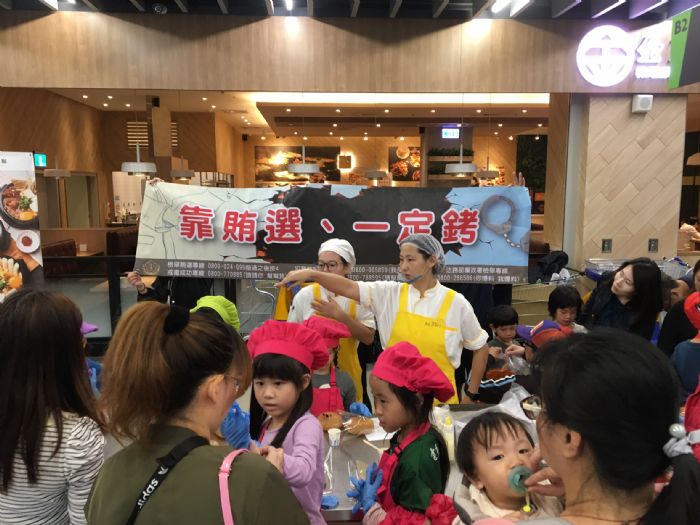 家樂福八德店於11月30日下午2點半舉行「貝果三明治DIY」體驗活動,十多名家長早早即為子女報名參加這項熱鬧有趣的親子互動,現場人潮踴躍,可見現代父母對子女成長過程的重視。在體驗活動正式開始前,由桃園地檢署反賄選宣導團隊進行反賄選宣導,觀護人黃欣怡活潑生動的反賄選有獎徵答,吸引賣場中來來往往民眾的熱烈迴響,現場不分老少民眾的熱烈參與,將反賄選的重要知識於遊戲過程深植民眾內心。