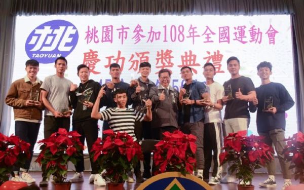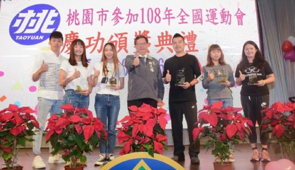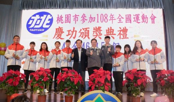 桃園市長鄭文燦1日中午前往中壢海豐餐廳,出席「桃園市參加108年全國運動會」慶功頒獎典禮時表示,桃園身為主辦城市,以選手為主角,結合流行及時尚元素,呈現與以往不同的運動風格,給人耳目一新的全新感受。桃園除了積極展現籌備賽事的能力外,桃園代表隊最終更以獲得45金、46銀、56銅的隊史最佳成績,獲頒大會第五名司法院長獎,總獎牌數147面,大幅超越106年的102面,因此獎勵金總金額高達7,058萬5,000元。鄭市長今日並頒發「桃園之光」獎座祝賀賽會奪金選手,同時勉勵所有選手再接再厲,於110年全國運動會再創佳績。