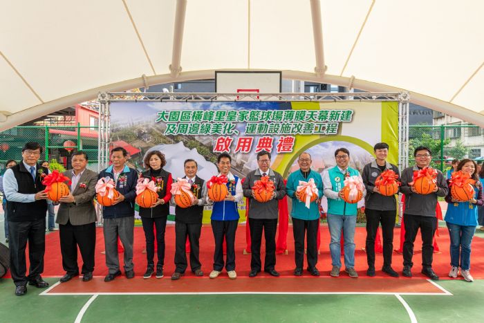 桃園市長鄭文燦(10)日上午出席「大園區橫峰里皇家籃球場薄膜天幕新建及周邊綠美化、運動設施改善工程完工啟用典禮」,鄭市長表示,大園皇家社區位於青埔特區,過去未曾參與重劃,市府考量舊社區仍有許多基礎設施與活動空間需求,於2年前決定進行皇家籃球場新建薄膜天幕各項工程及整體環境綠美化,並在今日正式落成啟用,提供居民休閒、育樂及運動空間,歡迎市民朋友多加使用。另外,市府也將持續努力建設大園,進行各項重大建設與基礎設施提升,提升大園居民的生活品質。