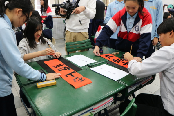 在文化體驗交流中,普203班同學準備了五項台灣特色的文化活動,有史艷文與黑白郎君的布袋戲演出、傳統技藝扯鈴表演、製作花燈、中國風剪紙藝術、寫春聯、魔術;日101班準備台灣的小籠包與珍珠奶茶,還有花雕雞麵當伴手禮;機202安排手作平溪天燈、普201教導日生製作中國結、普202體驗手工芋圓與春聯、多媒101製作糖葫蘆等。還有班級準備客家麻糬、湯圓、鳳梨酥、珍珠奶茶,這一系列的豐富文化美食體驗,讓遠道而來的日本師生感到驚喜連連,達到文化交流的目標。