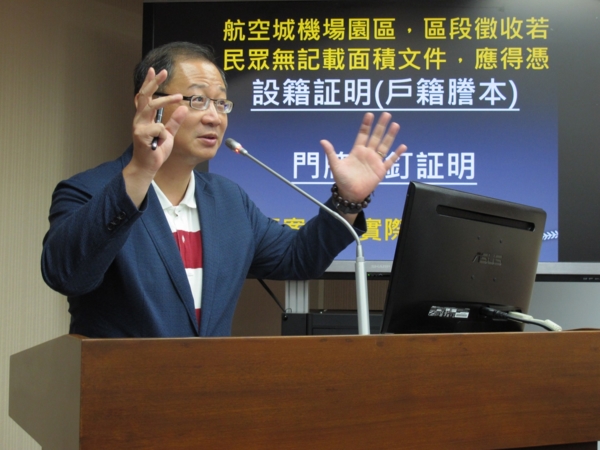 吳志揚再說,航空城區段徵收迄今資訊都是不透明的,民航局如果認為區段徵收的方式是公平、合理的,就應該將所有補償費的估價明細寄發給所有權人,並將各項地價資訊以公開透明的方式發佈在網路上(如:比準地地價、各類土地地價分布圖、各類土地標準地價等),使民眾瞭解自身土地的價值,否則民眾在資訊不完整的形況下,自然會對政府產生懷疑,民航局既為區段徵收的主責單位,就應發揮「子帥以正,孰敢不正?」的精神,做桃園市政府的表率,讓除了民航局負責的「蛋黃區」居民外,桃園市政府負責的「蛋白區」居民也能夠得知完整的資訊,不然連中央都不敢做了,地方政府怎麼會有配合的理由?