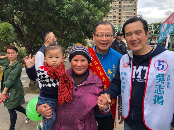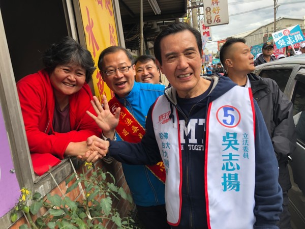 前總統馬英九20日專程前往桃園市第二選區立法委員參選人吳志揚的楊梅競選總部幫吳志揚加油打氣,並帶領著吳志揚和桃園市議員周玉琴、涂權吉及熱情民眾,前往楊梅火車站周邊掃街拜票。