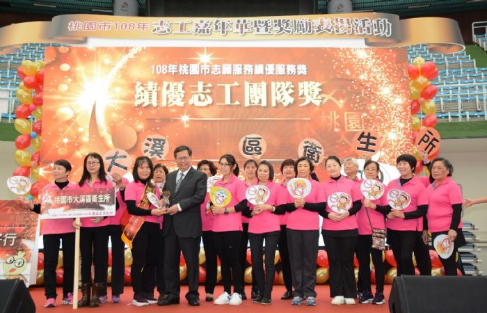 今日表揚活動計頒發319位金質獎志工、16位績優志工、4個績優志工家庭、4個績優志工團隊、榮獲108年全國志願服務獎勵銀牌志工17位及銅牌志工45位、108年衛生福利類(社會福利類)金質獎志工54位、10位高齡金質獎志工,及投稿桃園志願服務半年刊作者共33個單位,感謝並肯定志工們的無私奉獻。