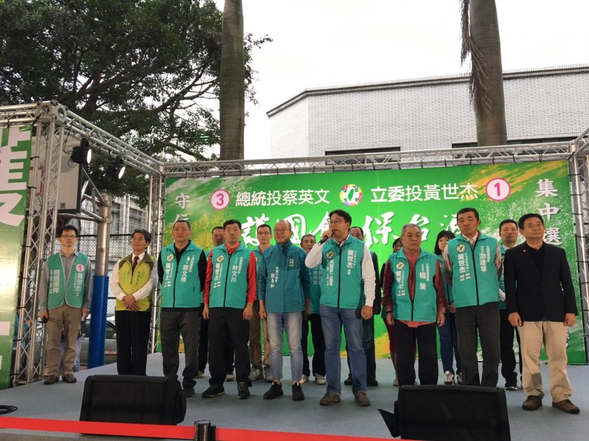 護國保台助選團22日來到桃園,為桃園市第二選區(大園、觀音、新屋、楊梅)立法委員候選人黃世杰助講、拉抬聲勢。護國保台總團長游錫堃、護國保台總指揮卓榮泰、民進黨秘書長羅文嘉、民進黨副秘書長林飛帆、經濟部長沈榮津、不分區立委候選人吳玉琴、洪申翰、湯蕙禎、網路紅人焦糖陳嘉行,一同拉抬聲勢,並呼籲總統票投蔡英文、立委投黃世杰立委、政黨票投民進黨,達到總統連任、國會過半的目標。