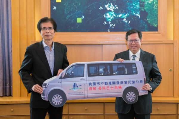 桃園市長鄭文燦(24)日上午於市府,出席「桃園市行動親子車及長照服務交通車交車儀式」,鄭市長表示,桃園市不動產開發商業同業公會秉持公益回饋的心情,配合長照2.0與托育公共化政策,捐贈市府社會局1輛行動親子車與2輛長照巴士(日間照顧接送車輛),總價值約522萬元,可望降低桃園年輕家庭的負擔。對此,市府感謝桃園市不動產開發商業同業公會以企業回饋社會的立場完成捐贈,為市民朋友提供友善托育及長期照顧服務。