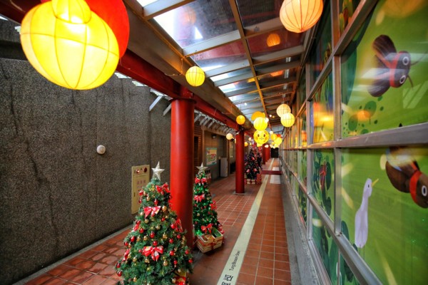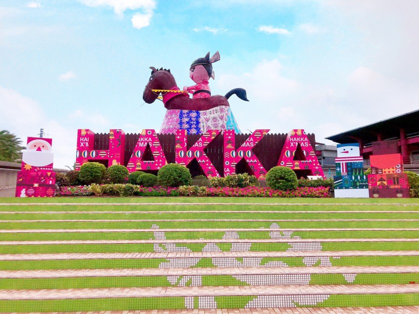 桃園市客家文化館結合創新客家花布,推出全台唯一客家風聖誕廊道。