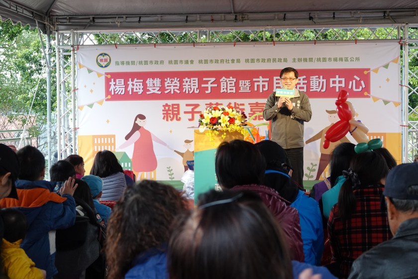 楊梅區羅區長表示,市政府及區公所為因應雙榮里及鄰近地區持續的人口成長,特別於雙榮兒童公園規劃親子館、市民活動中心雙功能建築,同時照顧孩子與社區居民的需要。
