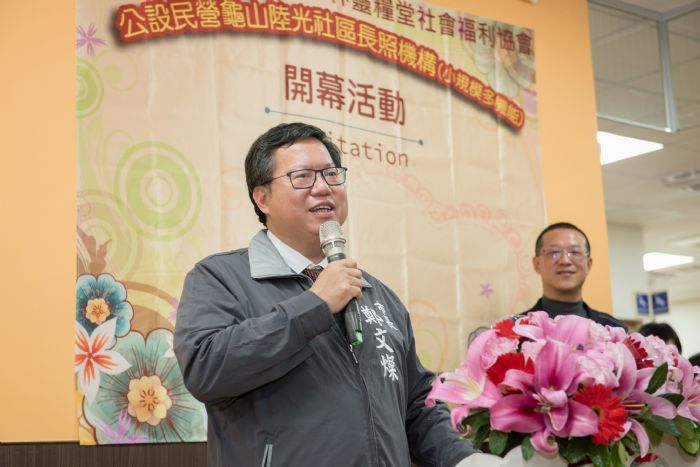 桃園市長鄭文燦(30)日下午前往龜山區,出席「桃園市公設民營龜山陸光社區長照機構開幕活動」。鄭市長說,龜山陸光社區長照機構原為國防部館舍空間,市府社會局與國防部進行協調,以新台幣2,126萬元辦理有償撥用,去(107)年4月9日獲得行政院核定後,經過公開評選委由社團法人中華民國士林靈糧堂社會福利協會進行營運,未來將提供小規模多機能服務,除每日同時段可為60名長輩提供日間照顧,也提供居家服務及臨時住宿等個別化服務,讓長輩跟照顧者都享有專業溫暖的照顧品質。
