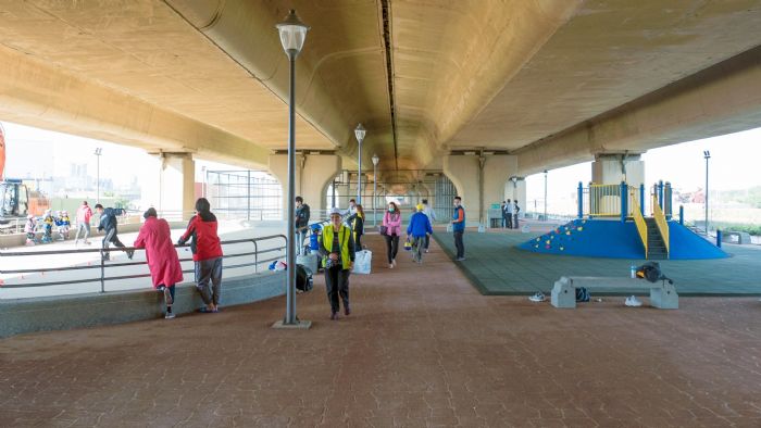 桃園市長鄭文燦(3)日上午前往觀音區,出席「台61線保障草漯橋下運動休閒廣場啟用典禮」時表示,市府推動市內台61線高架橋下空間活化使用,自108年9月23日起,於觀音區保障里至草漯里高架橋下空間規劃建置運動休閒廣場,包含金剛砂剛性鋪面溜冰場、共融式遊戲場、籃球場、法式滾球場、停車場及景觀高燈等設施,總面積約3,473.97平方公尺,同年12月18日完工,總工程經費約732萬9,186元,於今日正式啟用,將可就近提供當地居民一處多元化的運動場所。