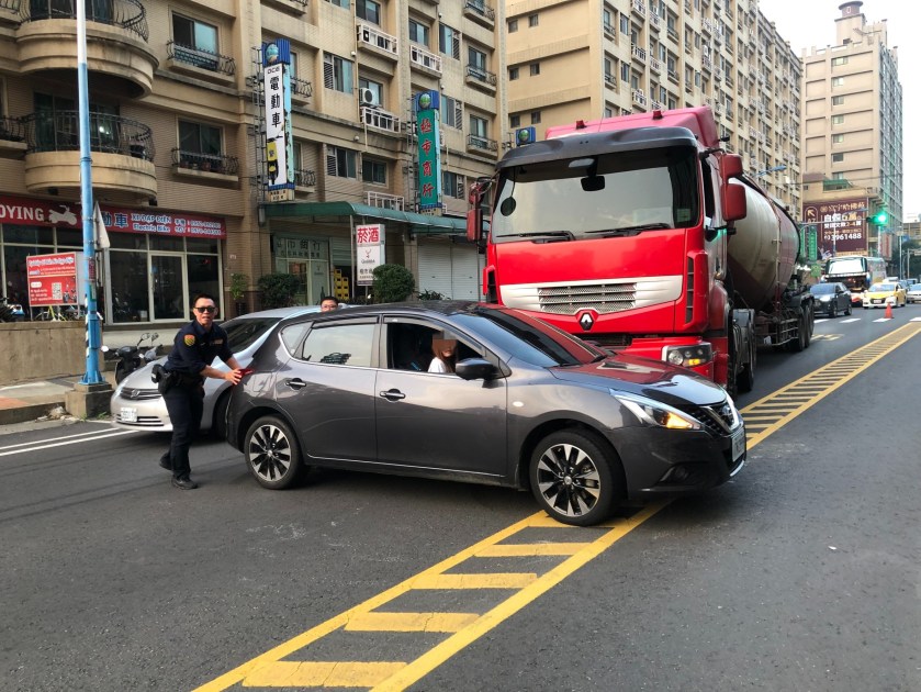 『警察先生怎麼辦?』焦急的女性聲音從報案電話裡傳來。在1月6日傍晚近17時許下班車潮的交通尖峰時刻,陳姓男子駕駛曳引車行經省道萬壽路二段不慎擦撞同向呂姓女子自小客車造成轎車打橫佔據兩車道,交通分隊員警獲報迅速抵達現場測繪,故障車輛因適逢交通巔峰時期,拖吊車也尚未趕到現場,員警當下檢視自小客車側嚴重毀損,但車輪無損尚可移動,並協請民眾合力將事故車輛推移至路旁,排除路障,最短時間恢復車流順暢。