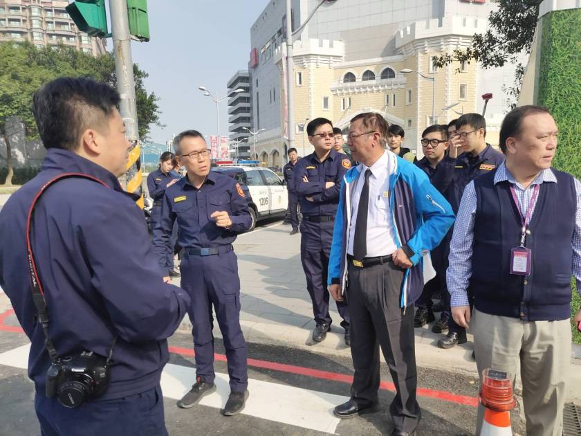 而後一行人另針對各大賣場春節前的購物人車潮進行評估與分析,蘆竹警察分局計畫實施車輛分流措施,並要求業者自聘交維人員,協助以交通錐區隔最外側車道為進場專用道。倘購物車潮嚴重回堵道路交通時,警方甚至會立即發布交通管制命令,暫時封閉賣場入口道路。