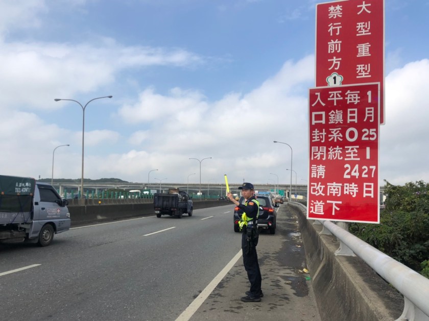 平鎮警分局副分局長陳怡誠表示,本次109年春節連續假期共有7天,平鎮警分局為了配合交通部高速公路局交通疏導管制措施,將於109年1月25日0時起至109年1月27日24時止,共3天72小時封閉台66線快速道路18K匯入國道一號平鎮系統交流道南下匝道。另本次連續假期不實施高乘載管制。