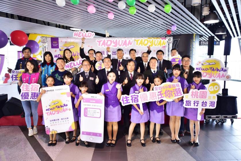 桃捷公司16日於桃園機場捷運A18高鐵桃園站,舉辦「從桃園出發 旅行台灣-搭機捷享住宿優惠」記者會。邀請大園區陳康國小演出知名”航空舞”,由小朋友穿著空姐制服活力開場,也代表桃園機場捷運串聯機場,帶著國內、外旅客旅行台灣的意象。桃捷公司將搭車效益再擴大,桃捷董事長劉坤億表示,桃園機場捷運自106年3月通車以來,總運量已突破7千萬人次。作為機場聯外捷運系統最大任務,就是服務來台灣旅遊的國際旅客,特別是青年旅遊。背包客下飛機之後可以搭乘機捷南來北往,可以到A18站轉乘高鐵,在台灣西部旅遊,又或者是搭到A21站,再轉搭公車到中壢火車站,搭上台鐵到台灣東部地區遊玩也都非常的方便。桃捷公司希望搭乘機場捷運的旅客,都能享受桃捷公司能透過異業合作的方式暢遊全台灣。