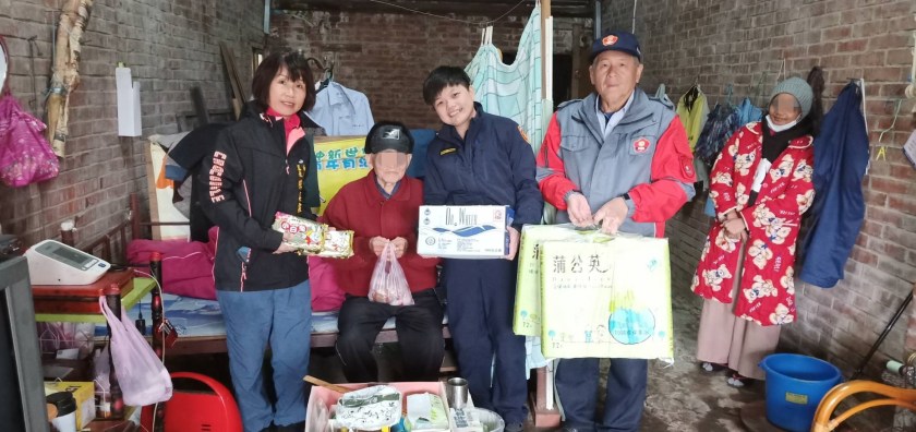 楊梅分局富岡派出所一直以來都與地方保持良好的警民聯繫,並且在關懷弱勢方面不遺餘力,某天從里長陳奕霖得知轄內有需要資助的獨居老人後,富岡所鄒安晴所長便與里長計畫寒冬送暖活動,轄內一位彭老先生獨自居住於簡陋屋內,行動不便,聽覺反應較慢,就特別到他的住家關心其住居生活,是否有需要協助之處並致贈生活用品、保暖物品。
