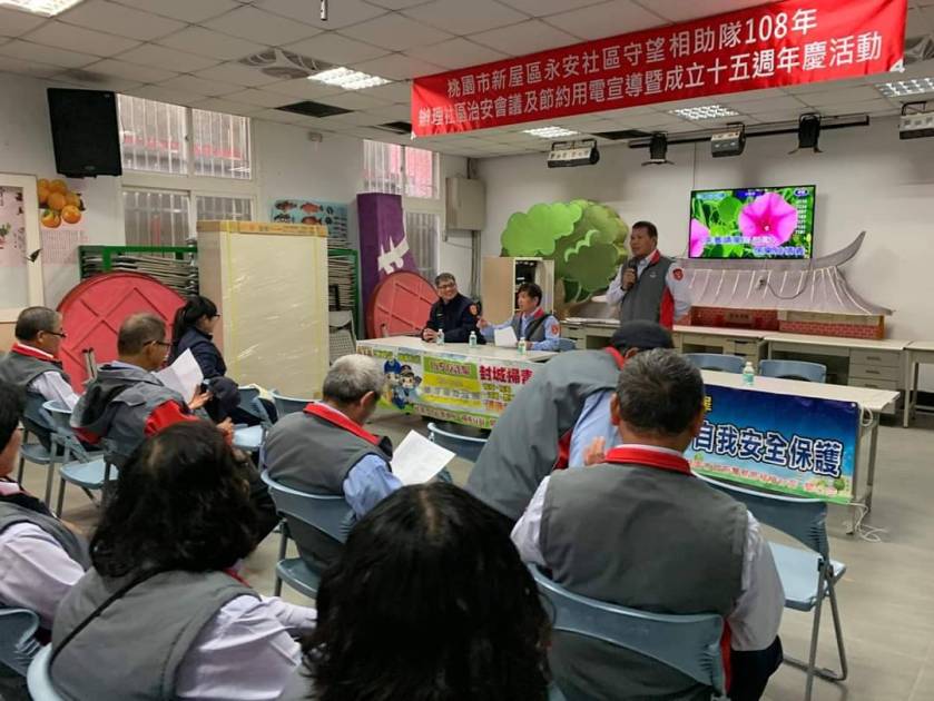 永安派出所協同社區守望相助隊針對轄內易犯罪處所於18日晚間進行社區治安座談會暨犯罪預防宣導,此次座談會由守望相助隊隊長曾義郎主持,永安里里長郭先彰及永安派出所副所長廖經煒等人與會,警民攜手來加強轄內巡守勤務,全力防制竊盜案件發生。