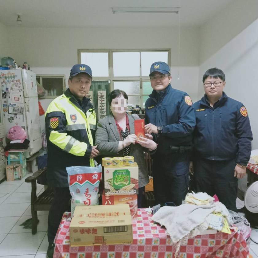 其中年近8旬的黃姓老婦因年邁無法工作,無固定經濟來源但仍需獨自撫養一名罹患精神障礙的40歲女兒,生活極為困苦,平時均倚靠左鄰右舍的濟助,警方於訪視時濟助民生物資並贊助慰問金,黃婦心中充滿感動,強忍著淚水哽咽地說不出話,頻頻鞠躬道謝。
