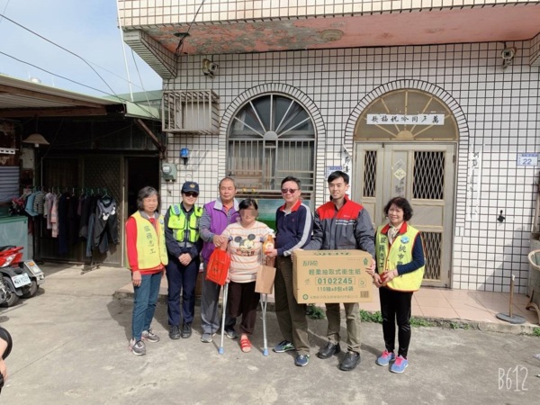 本次活動由永安派出所偕同下田里里長黃福禮、轄區民間企業家永豐餘以及婦女志工們共同發起,於19日在這冷冽寒冬裡分別前往轄內弱勢族群、獨居老人住處,致贈紅包、米、麵條、沙拉油、醬油、衛生紙等日常用品。