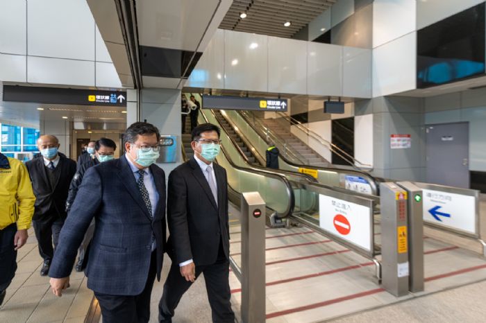 今日包括立委吳秉叡、鐵道局長胡湘麟、市府捷運局長陳文德、新聞處長詹賀舜、桃園機場公司董事長王明德、桃園航勤公司董事長郭榮宗、桃園大眾捷運公司董事長劉坤億、總經理蒲鶴章等均一同視察。