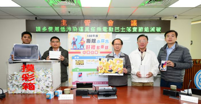 桃園市環保局舉辦「撕小廣告換超商禮券」的活動已邁入第六年,民眾已撕除近1,500萬張違規廣告單,兌換超過371萬元禮券及市民卡加值金,獲民眾熱烈迴響,環保局長呂理德2月19日公開抽獎,抽出3部市價3萬元的55吋液晶電視等大獎。呂局長表示,拒絕違規小廣告,人人都是環保尖兵,只要一個小動作,就能讓桃園的市容環境更美好。