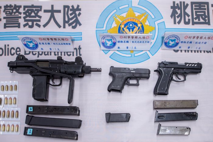 桃園市長鄭文燦20日上午在市府警察局長陳國進、桃園區長陳玉明陪同下,前往刑事警察大隊,出席「慰勉警察局破獲地下軍火庫記者會」,鄭市長表示,市府警察局刑事警察大隊科技犯罪偵查隊歷經半年跟監蒐證,19日在桃園區某大樓內破獲黃姓男子持有大批槍械彈藥,並當場起獲包括MINI V2I衝鋒槍(烏茲)及GLOCK手槍(克拉克)等制式槍枝各1枝、制式子彈共186發,另查獲改造ARMED FORCES手槍1支、空氣槍4枝及改造工具一批,火力之強大實屬罕見。歹徒擁槍自重,或者成為槍枝的供應者,都將形成治安的潛在威脅,所幸警方及時查獲,避免該批槍械流入市面,危害民眾人身安全。