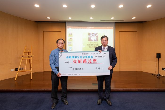 鄭市長提到,傅校長不僅是一位傑出的教育工作者,也十分善於說故事,他所創作的作品總是能從兒童的心理出發,透過引人入勝的情節,啟發孩子的心靈,鄭市長期盼未來這些作品能夠進一步改編或是製成繪本,帶領更多兒童閱讀,並讓兒童文學成為桃園的重要特色之一;鄭市長也說,現代小孩經常沉迷於3C產品,不僅有損害視力的風險,也可能弱化文化及語言表達能力,希望透過多元管道,鼓勵孩子多閱讀、多寫作。