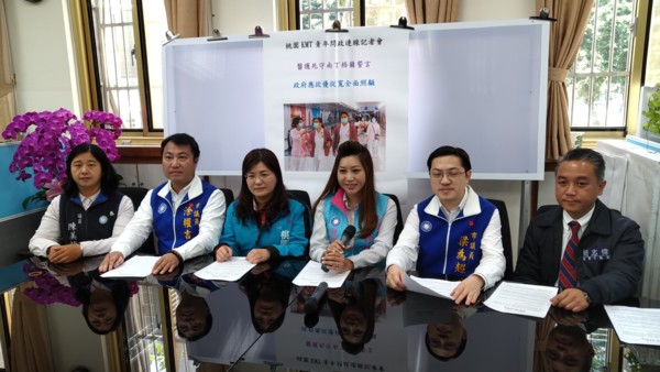 市府應該站出來給醫護人員當靠山,趕快擬具桃園版醫護照顧相關辦法,否則就算11家醫院組成聯防醫療網,沒了醫護也只是空談。出席桃園KMT青年問政連線記者會成員包括召集人桃園市議員朱珍瑤、桃園市議員涂權吉、桃園市議員張桂綿、桃園市議員陳美梅、桃園市議員黃敬平、桃園市議員梁為超、桃園市議員簡志偉、桃園市議員林昭賢等八位議員。