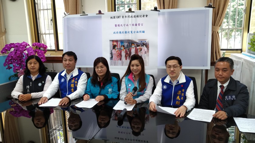 桃園KMT青年問政連線26日召開記者會表示「嚴重特殊傳染性肺炎防治及紓困振興特別條例草案」已經在立法院三讀通過,該條例中針對受衛生機關認定須隔離或檢疫者明定防疫隔離假及補償,卻對於投入防疫第一線的醫護人員身心或家庭功能維繫鮮少著墨,桃園市政府應做醫護人員最大的後盾,率先依職權提供醫護人員同樣等級照顧以及完善的配套措施。