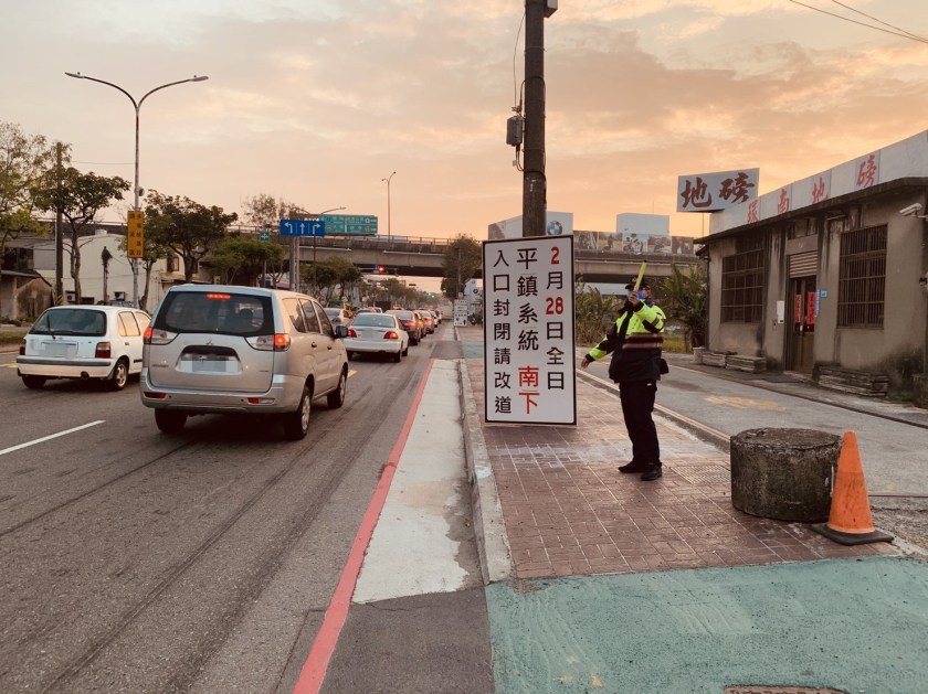 桃園市政府警察局平鎮警分局為了配合辦理109年228連續假期國道交通疏導、管制專案,台66線快速道路匯入國道一號平鎮系統交流道南下匝道入口,將在109年2月28日0時起至24時止,共24小時實施匝道封閉,請各用路人多加注意。