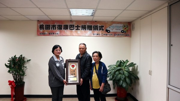 桃園區市民曾金清先生2日捐贈桃園市1輛復康巴士,由鄭貴華局長代表受贈。曾金清先生過去以務農為生,28歲的那年身體健康亮紅燈,無法再從事勞力工作,經濟的壓力、家庭生活困頓成為桃市低收入戶,市府及社會各界的大力幫助,讓曾先生深感在心。