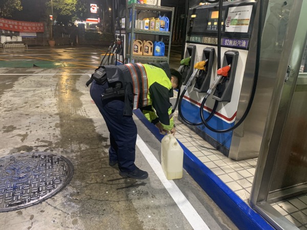後來宋姓男子突然看見有車經過,心裡燃起希望本想主動攔車求助,靠近時才發現是警察巡邏車,當下又不好意思求助警方,只能低著頭繼續牽車,處理警員徐松佞了解狀況後,主動向返回派出所拿取油桶,並駕車至龍潭市區找尋加油站購買汽油,並幫忙宋男加滿油,順利的協助排除車輛故障問題。