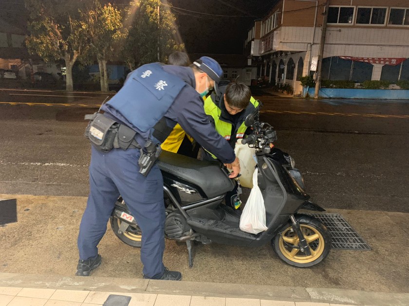 龍潭分局石門派出所警員張貴淵、徐松佞及陳欣妤等3員,於109年3月8日凌晨0時許執行巡邏勤務,行經龍潭區中正路與三坑路段時,見1名年輕男子在路旁推著機車,駕駛看見警方經過直低頭,警方當下直覺有異,在深夜鄉間人車鮮少的路段,還一度誤以為是駕駛可能有酒駕違規情形,看見警車經過緊張而將車輛熄火用牽的,員警立即提高警覺並趨前盤檢,經了解才發現係男子是因為機車沒油才熄火牽車,才讓警方鬆了一口氣。