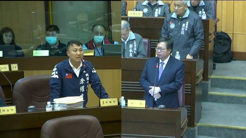 桃園市長鄭文燦10日率市府團隊出席桃園市議會第2屆第3次定期會施政報告及說明,針對市議員涂權吉質詢楊梅區網球場管理單位、楊梅後站籃球場天幕設置需求等議題詳細說明。