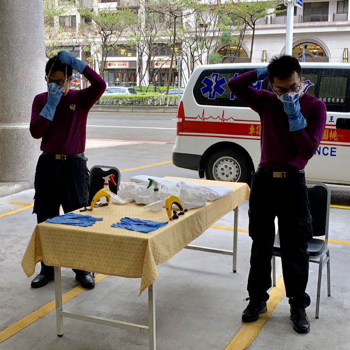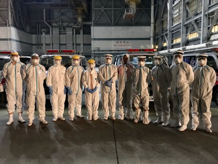 在防護部分,詹處長強調,此次出勤同仁皆依標準作業流程進行,並以最高標準防護,各配有N95口罩、連身型防護衣、鞋套、護目鏡及手套等裝備,日前後送鑽石公主號包機乘客任務,也是同樣的規格,這次再完成使命,累積經驗值,相信將建立防疫處置典範。