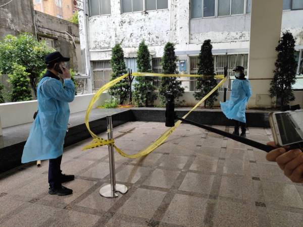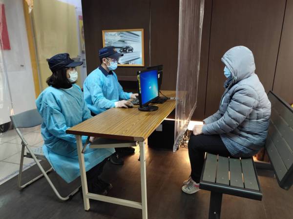 前來洽公的民眾或上班的員警,在進入室內應先接受體溫檢測與手部消毒,完成初檢後,才能入內洽公。雖然這一切程序看似繁鎖,但是為了保護民眾與員警,這是必要的措施。