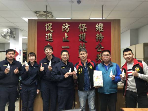 防疫期間警政工作不打烊,警察工作環境時間很長,同仁每天除了在派出所內服勤外,仍需外出執勤數個小時,經常需與民眾接觸,員警在外執行勤務雖已配戴口罩但無法即時洗手消毒,因此有鑑於此,八德警友站站長吳航、副站長賴進富及幹事林傳哲特別準備了乾洗手隨身瓶40瓶、防護手套及濕紙巾數箱要送給同仁。