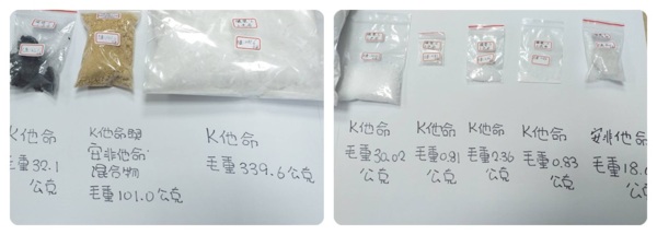 警方進入室內後赫然發現該處為一製毒工廠,經犯嫌同意,當場查獲二級毒品安非他命18公克、二三級毒品混和物101公克、三級毒品K他命405.72公克、製造三級毒品K他命器材一批、用來製毒脫水用機器一台、漏斗3個、濾網19個、水瓢3個、瓦斯爐一組、白鐵鍋一組、K盤2個、電子秤2台、手套12雙、烘毒用鐵網一片、量杯3個、空桶9個、改造土耳其制式925手槍一把、子彈15顆。