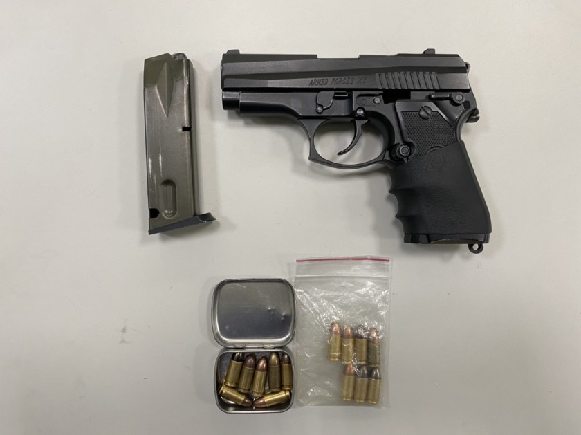 八德警方日前接獲情資,轄內八德區重慶街附近疑有不明人士出入且持有非法槍械,經轄區四維派出所所長林俊廷、警員陳敬霖及偵查隊派員於附近查訪埋伏,20日10時許在重慶街見一名行跡可疑的林姓男子(近40歲)欲開車離開時,遂上前盤查該名林姓男子。