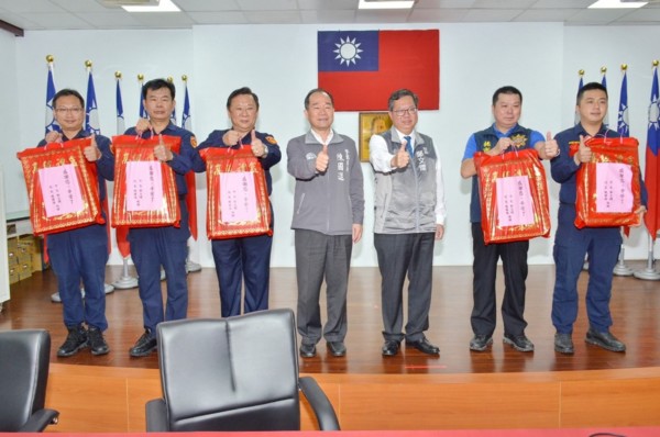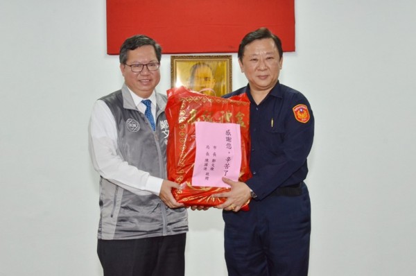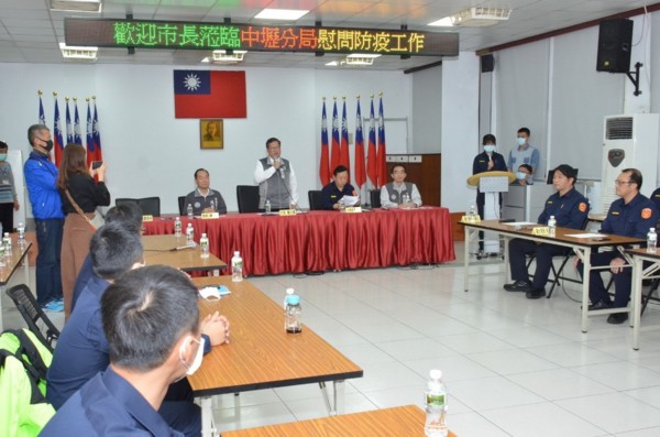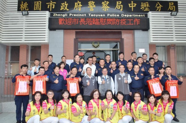 桃園市長鄭文燦為了體恤員警面對防疫工作的辛勞,於23日上午10時許同桃園市政府警察局局長陳國進、中壢區長吳宏國至中壢警分局慰勉執行防疫工作員警,市長除肯定所有第一線基層同仁積極參與各項防疫工作,也叮嚀執勤該有的防疫措施定不可輕忽,希望大家共體時艱,努力撐過抗疫這段期間。