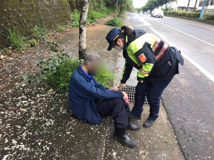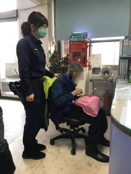 因當時天雨微寒,老翁疑有受寒失溫情形,吳員便將老翁先行帶返派出所休息,並為其烘乾身子舒緩其受寒症狀,及提供熱食裹腹。