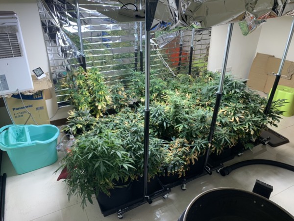 因詹男所居住的透天豪宅大門未關,且偏出濃郁的大麻氣味,經警方逐一清查現場,共查扣大麻活株共有100棵、大麻種子200顆、毒品咖啡包400公克、販毒所得7萬元及一批栽植工具,另外警方也發現詹男種植技術也十分專業,除了乾濕恆溫、大麻幼株及大麻成株均分開種植外,家中四周也佈滿了錫箔紙,來反射燈光增加日照,提升大麻株存活機會。