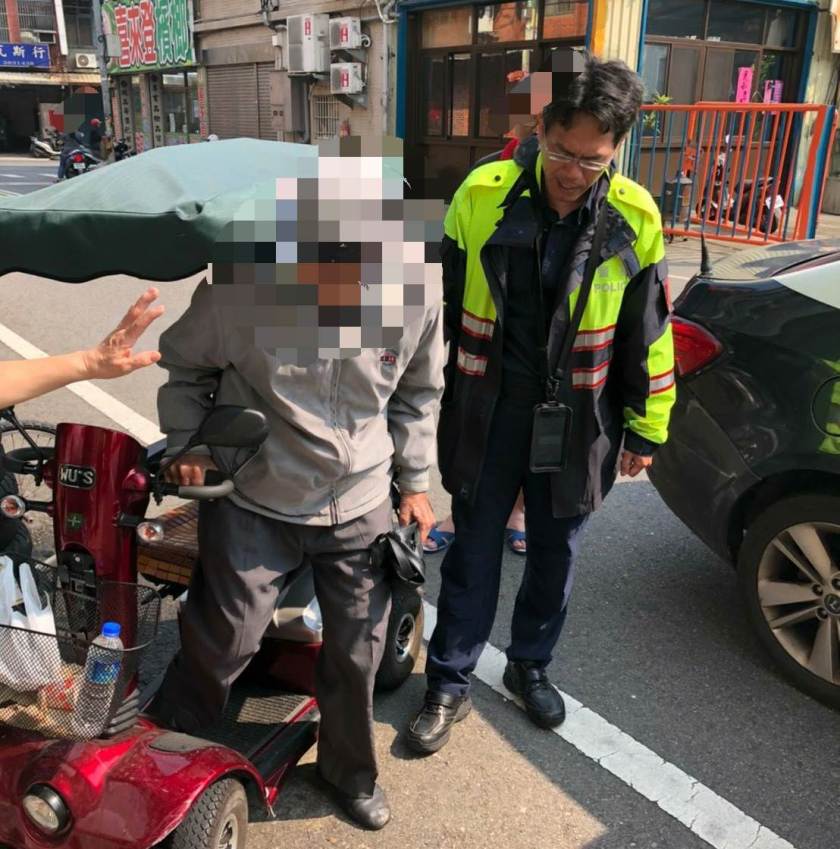 八德警方日前9時許,接獲眾報案八德區廣興路1400多號有迷失老人,巡邏警員張博清、游育禎到場了解,發現是一名近九旬的老翁騎乘電動車從虎頭山要返回桃園區陽明公園附近的住家,但老翁騎一騎忘記住家位置,迷失了方向從介壽路一路騎往廣福路方向,因為騎到電動車沒電剛好停在廣興路1400多號,故熱心店家老闆趕緊報案請警方處理。