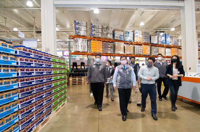 桃園市長鄭文燦9日前往好市多Costco南崁店關心賣場民生物資供應及防疫情形,受肺炎疫情影響,賣場防疫消毒用品暢銷,也因外食族減少,許多人選擇在家用餐,生鮮蔬果、蛋豆魚肉類及烘焙材料等銷售量均有提升,目前物資供應仍屬充足,請市民朋友適度購買勿囤貨。