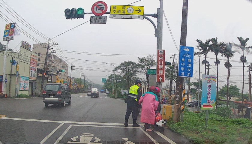 龍潭警方於13日清晨6時30分許執行巡邏勤務,在桃園市龍潭區中豐路段等待紅燈時,在濕冷的清晨發現前方1部機車忽然倒在路旁,車旁竟倒臥著1名女子,經趨前關心情形,只見其直搖頭說著身體不適快暈倒,卻遲遲無法表達身分及住所,女子雖無明顯外傷,龍潭交通分隊警員陳永富、林家豪等2員,擔心女子是否因騎車不慎摔倒而有其他受傷情形,考量當下天氣清晨濕冷且又下著細雨,為顧及女子安全,即通報消防救護人員到場協助送醫,經警方陪同送醫診治無大礙後,同時查證確認身分並通知家屬到場。