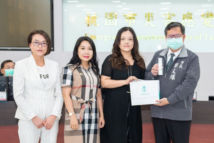 鄭市長也於防疫會議中頒發感謝狀,感謝點閱串流科技股份有限公司捐贈MagV快訊防疫關懷閱讀卡3,000份,提供多元豐富的線上讀物,充實居家隔離或檢疫者的精神生活;感謝手信坊有限公司捐贈牛軋餅、鳳梨酥等食品5,000份,作為桃園市安心紓食包物資;感謝婕英生技股份有限公司捐贈防疫噴霧(菁植淨膚噴霧)2,000組,也感謝森晨貿易有限公司捐贈明星花露水凝膠搓手液2,000瓶,提供市府統籌運用,與市府一同守護市民健康,共同對抗疫情。