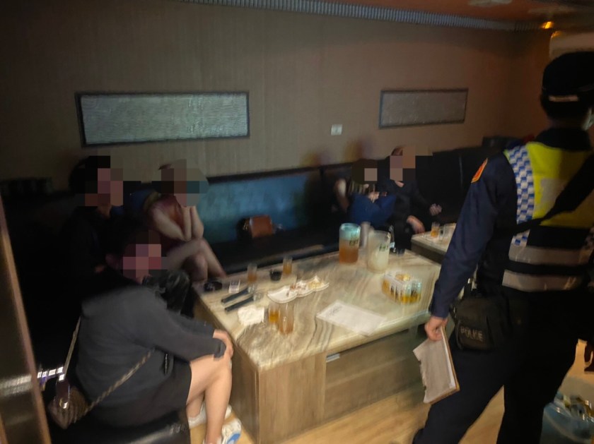 平鎮警分局宋屋派出所副所長黃冠貿表示,日前接獲民眾檢舉,平鎮區環南路上有酒店疑似未配合政府防疫措施,仍持續違規營業。警方立即派員臨檢並逐層檢視,果然在某層大門深鎖的酒店前聽見唱歌的喧囂聲,警方經尋至該酒店後門樓梯進入,當場查獲該酒店違規營業。
