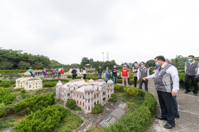 鄭文燦也說,受疫情影響小人國遊客銳減,衝擊園區營運及員工生計,市府將積極協助業者申請中央紓困方案,並依實際情況研擬地價稅及房屋稅等減免方案,與業者一起攜手度過難關。包括市府觀旅局長楊勝評、民政局長王安邦、青年局長顏蔚慈、客家局長何明光、龍潭區長胡星輝、小人國主題樂園董事長朱鍾宏均一同進行視察。