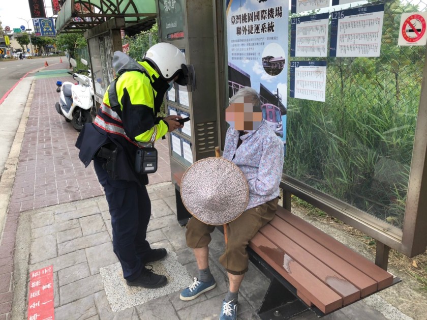 平鎮警分局宋屋派出所副所長曾偉龍表示,家住平鎮區延平路,略有失智的戴姓老翁,因女兒外出工作,家裡空無一人,老婦想外出買點東西吃,所以裹上大衣拎著斗笠徒步出門,沒想到出門後卻忘了回家的路,於是獨自坐在公車候車亭內,不知所措。