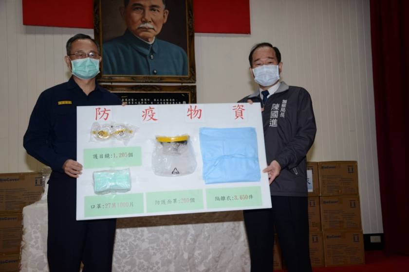 署長為讓第一線執行防疫員警無後顧之憂,向中央爭取自109年2月7日起,每日提供每位外勤員警至少1片口罩,桃園市政府警察局已陸續獲撥發口罩25萬7,000片及護目鏡、隔離衣、防護衣、防護面罩等防疫物資,24日署長再親自帶來口罩1萬4,000片及隔離衣2,500件,讓員警有足夠防疫物資可使用。