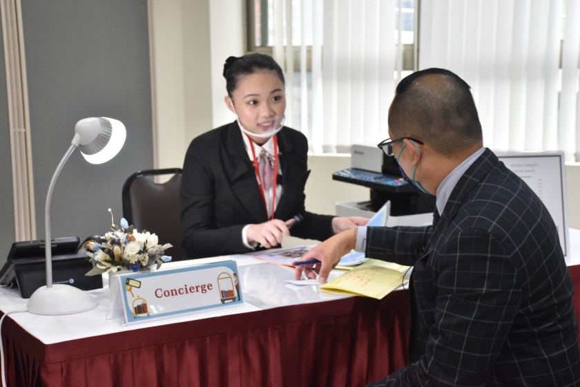 今年新增的「旅館接待」職類,中區今年報名人數不足,所以合併至北區辦理,共有來自中部以北的21選手報名參賽,競爭非常激烈,選手必須經過淘汰賽,才能取12名進入實務競賽,考題主要是由訂房、櫃檯接待服務、諮詢服務、客訴處理及緊急事件應變及房客遷出等5項不同的情境模組題,尤其是在諮詢服務術科測試15分鐘,需幫客人安排全天或半天的市區(近郊)遊程,還得完成訂位及遊程規劃等後續安排作業,全程採英文作答,選手必須在短時間內回應客人的需求。