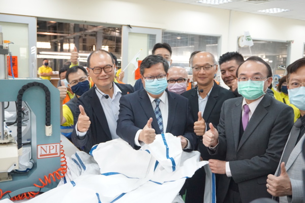 為支援前線防疫人員,興采及聚紡計畫捐贈隔離衣予桃園市政府,願能在疫情肆虐期間,組成紡織國家隊,提供醫療防護成品給整個醫療體系使用,與捍衛前線的醫護人員全力共同面對疫情。